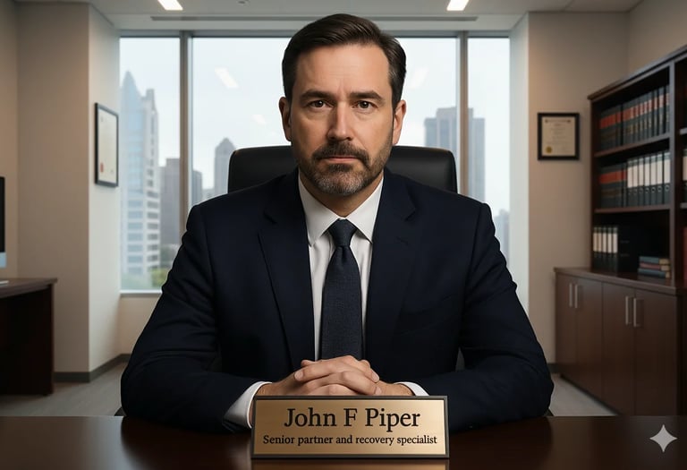 John F. Piper leads the firm’s Asset Recovery and Judgment Enforcement practice, representing clients in complex domestic and cross-border recovery matters. His work focuses on the identification, tracing, and recovery of assets in high-value and multi-jurisdictional disputes.